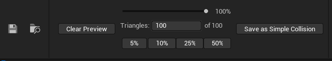 When saved, the simplified mesh is converted into simple collisions (convex hulls), the most performant method for physics in Unreal Engine. The process can generate multiple hulls to fit concave shapes.